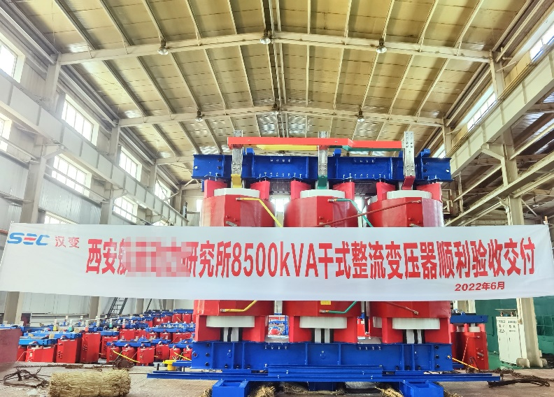 2022年7月1日,新環(huán)干變研制生產(chǎn)的8500kVA干式特種整流變壓器順利驗(yàn)收交付。該產(chǎn)品服務(wù)于中國(guó)航天科技集團(tuán)公司西安某研究所,在極端工況和特殊環(huán)境下對(duì)航天材料專用試驗(yàn)設(shè)備,提供特種等級(jí)電壓、電流的專用整流變壓器。